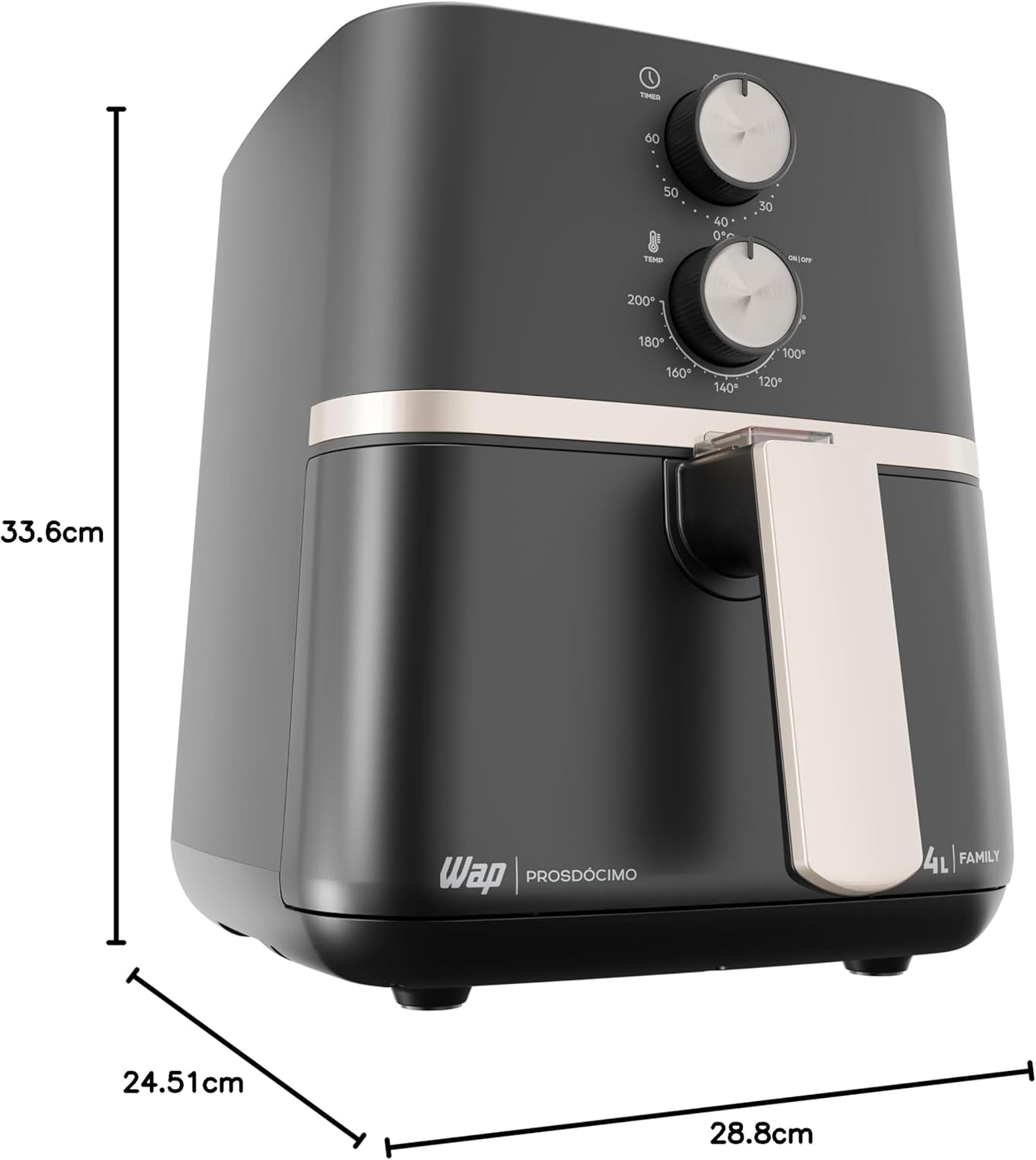 * A Fritadeira Elétrica WAP Air Fryer Family é uma air fryer de 4 L (cuba) com cesto útil de 3 L que promete cozimento por circulação de ar 360°, timer de 60 minutos e faixa de temperatura entre 80°C e 200°C — aqui respondemos se esse conjunto atende a famílias pequenas, casais ou uma pessoa que busca praticidade.